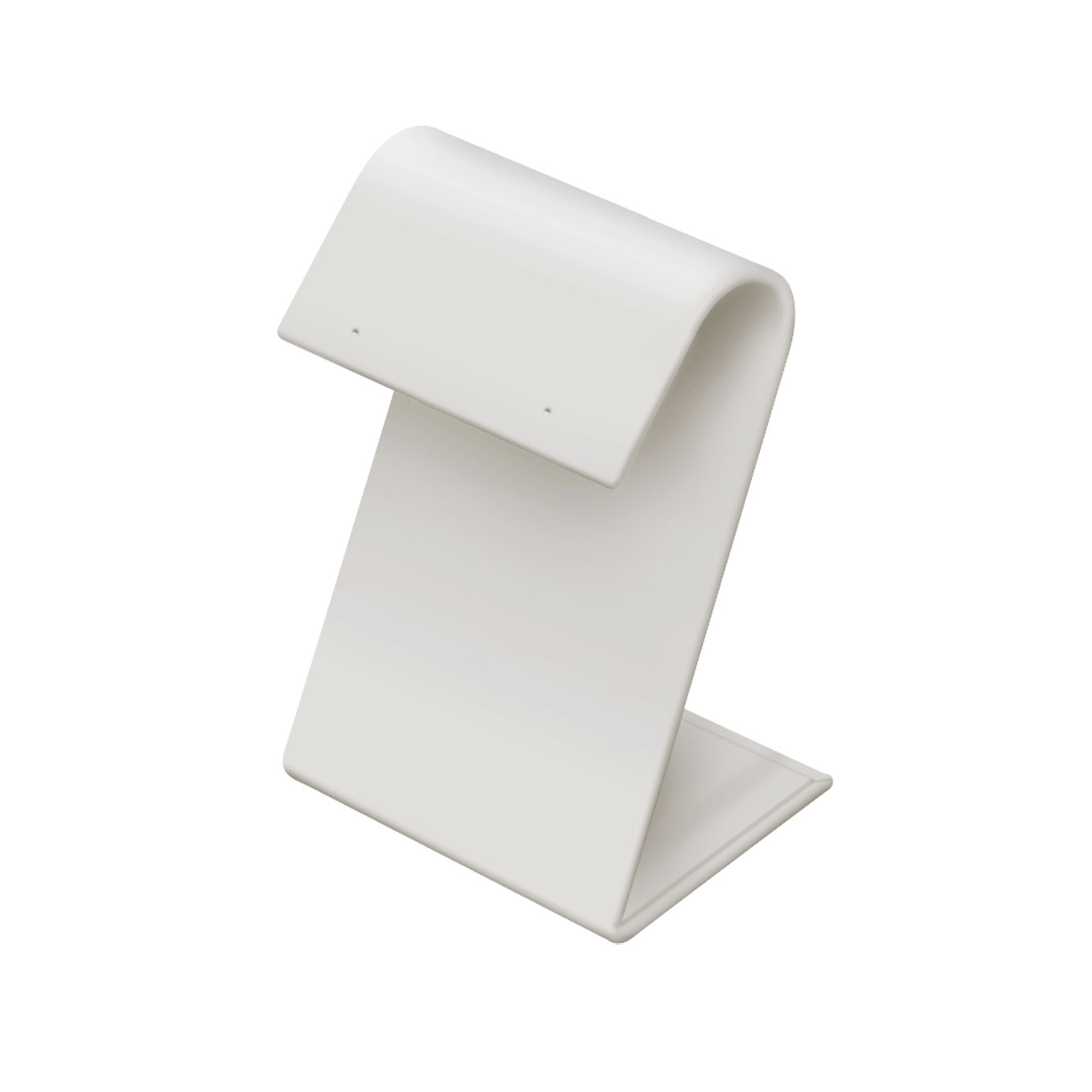 This 1-pair earring stand is covered in leatherette and available in three colours.